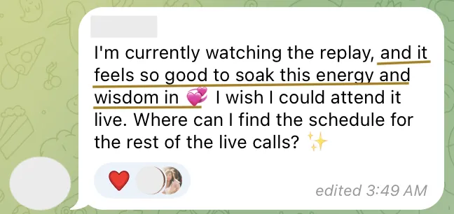 Every day you’ll receive a voice note training from me, along with an exercise and practice to tap into your magic.